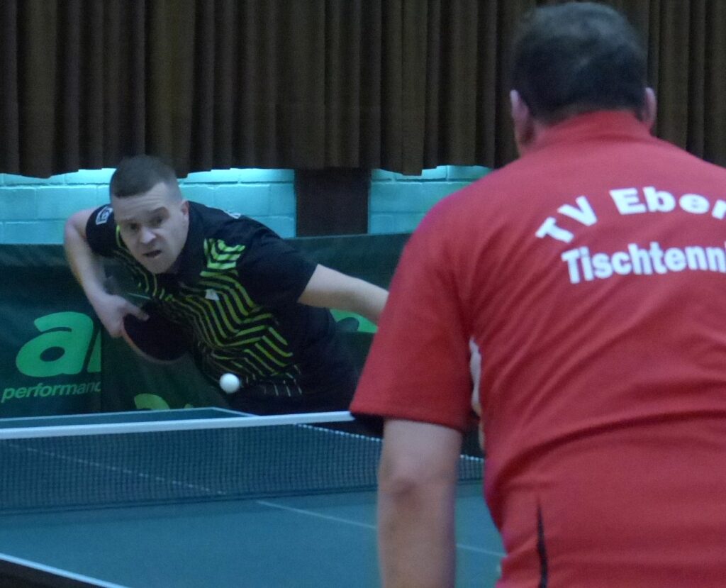 Tomas Flicek lieferte sich gegen die Nummer eins vom TV Ebern, Martin Bouska, ein extrem schnelles und spannendes Match über fünf Sätze (Foto: Hubert Becker)